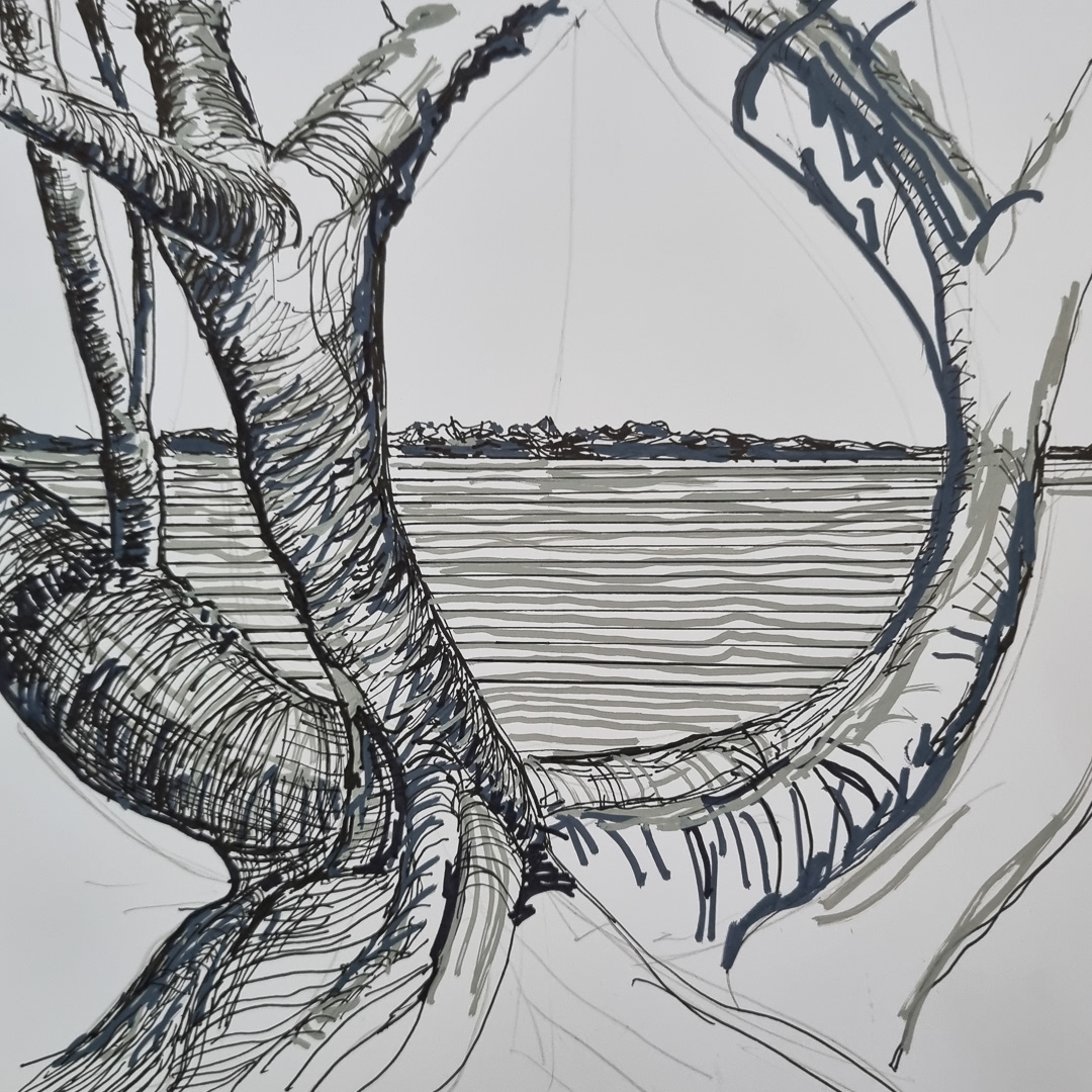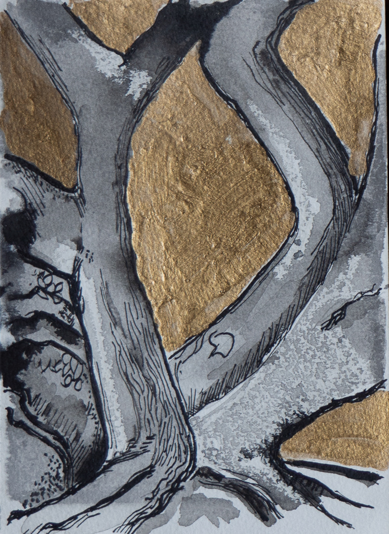 This print evolved from a series of drawings in Bute Park in Cardiff. The gardens behind the castle have some splendid species of trees. The Marquess of Bute must have picked them up on this travels. It's well worth a visit.